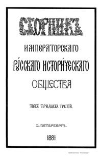 Сборникъ Русскаго историческаго общества. Томъ тридцать третiй