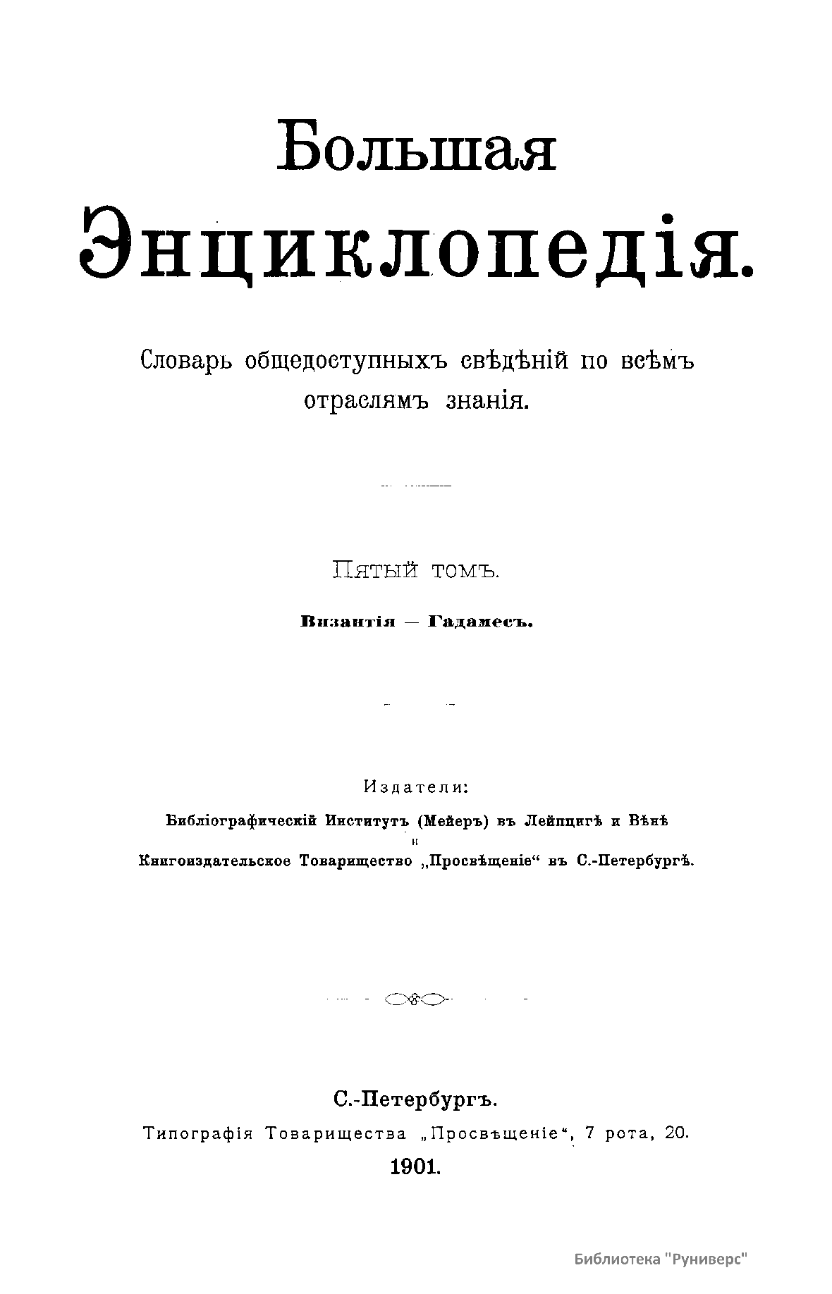 Большая Энциклопедiя. Пятый томъ. Византiя - Гадамесъ