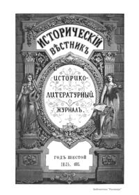 «Исторический вестник» - русский ежемесячный историко-литературный журнал. Издавался в Санкт-Петербурге с 1880-го по 1917 г. Журнал был основан А.С. Сувориным и С.Н. Шубинским с целью «знакомить читателей в живой, общедоступной форме с современным состоянием исторической науки и литературы в России и Европе». Вышло 150 тт. Каждый том состоял из трёх ежемесячных выпусков, имел свою нумерацию страниц, оглавление, список иллюстраций. Журнал приобрёл устойчивую популярность среди читателей, заняв прочное место в «триумвирате» русских исторических журналов наряду с «Русским архивом» и «Русской стариной». опережая их по количеству подписчиков. Отличием «Исторического вестника» было то, что он не помещал на своих страницах необработанных, сырых материалов. С другой стороны, журнал приближался по своему типу к журналам общелитературного образца, сочетая в себе коммерческий успех и доступное изложение материала.