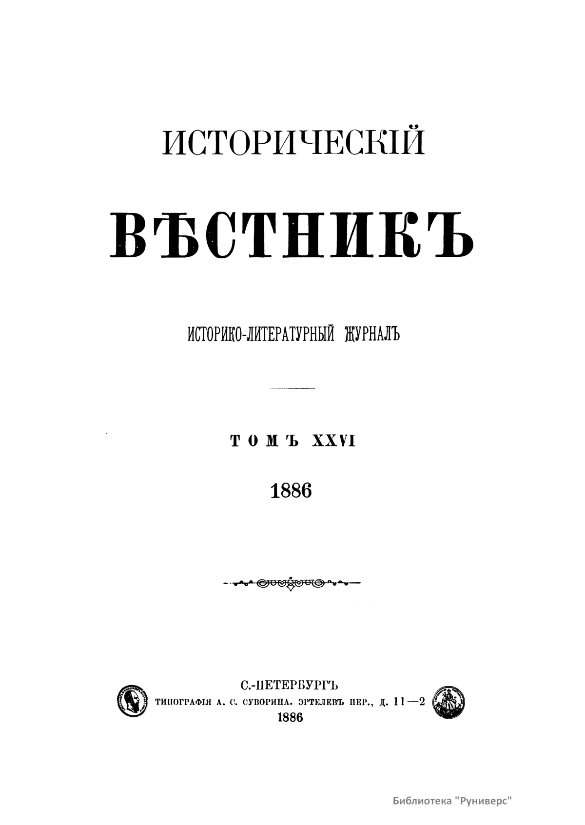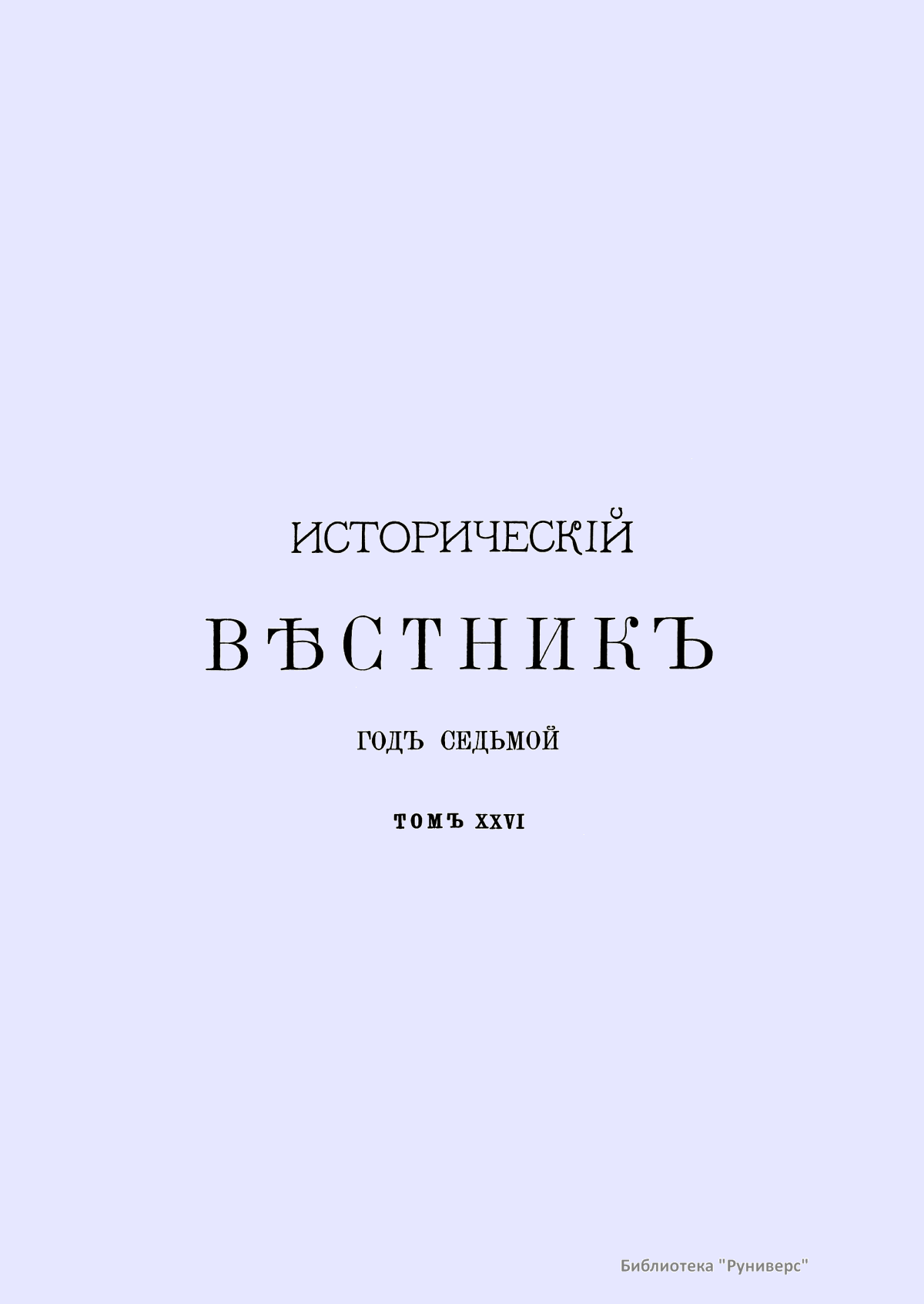 Историческiй вѣстникъ. Историко-литературный журналъ. Томъ XXVI