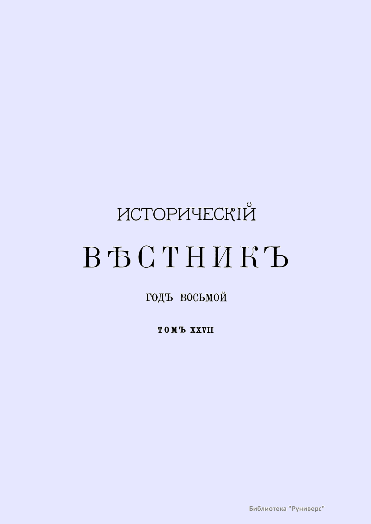 Исторический вестник. Историко-литературный журнал. Том XXVII