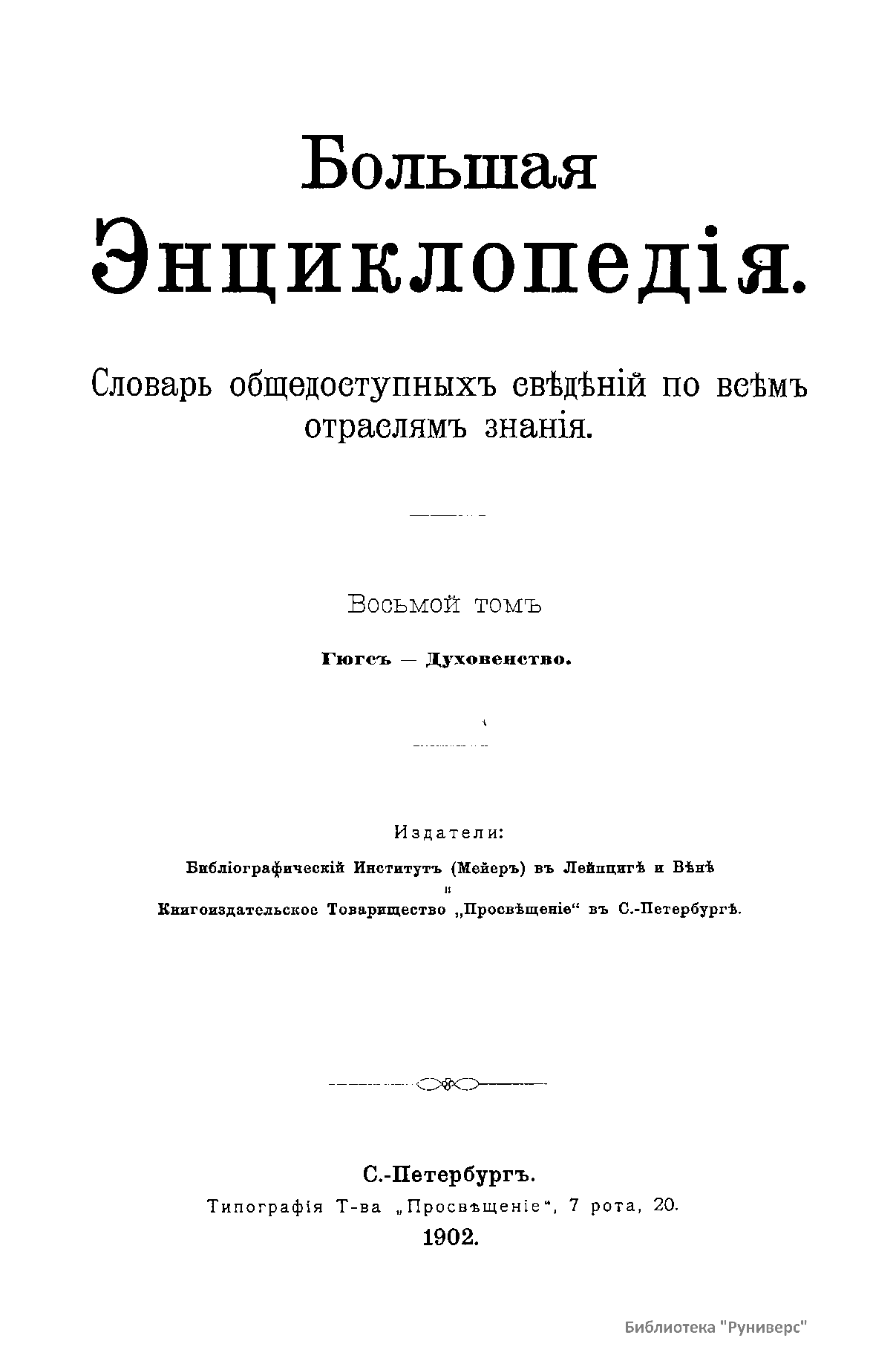 Восьмой том. Гюгс - Духовенство