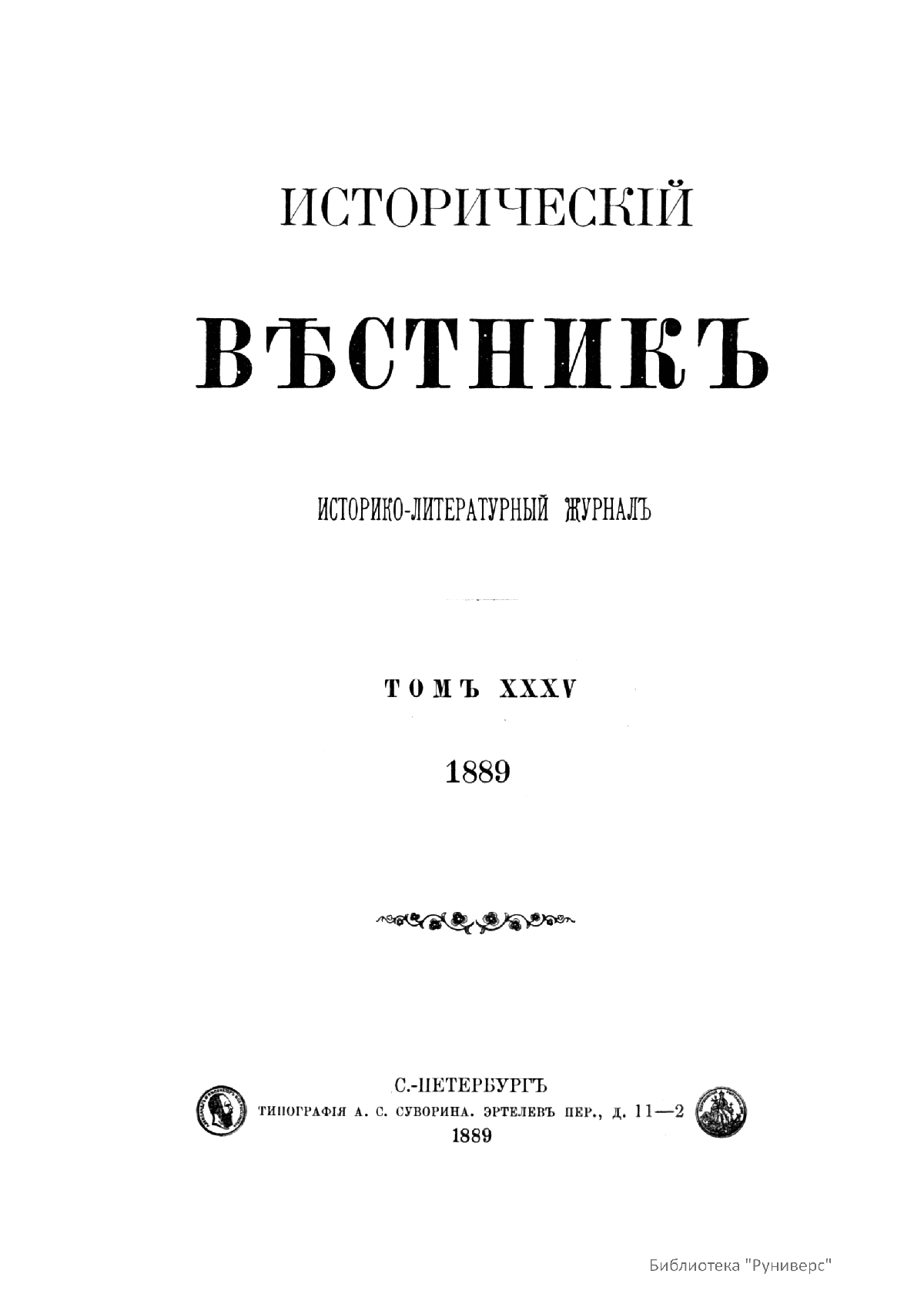 Историческiй вѣстникъ. Историко-литературный журналъ. Томъ XXXV