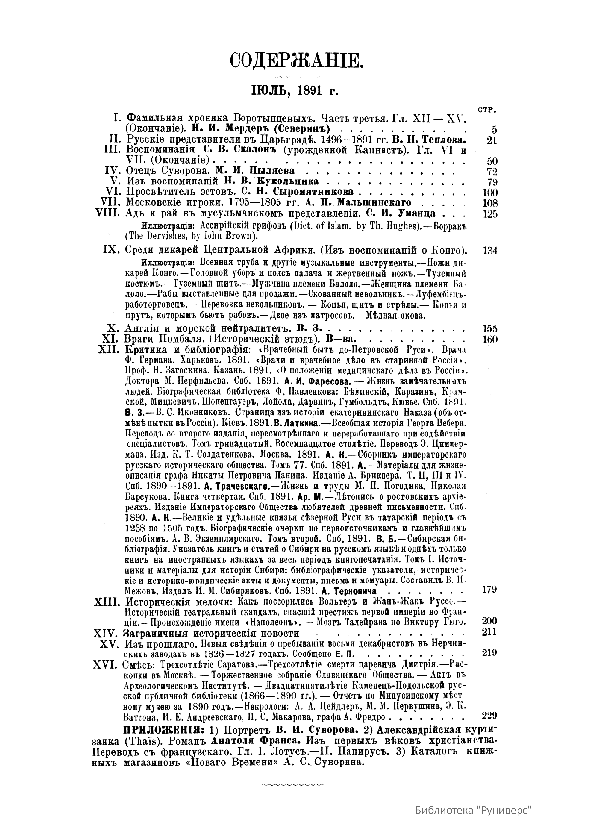«Исторический вестник» - русский ежемесячный историко-литературный журнал. Издавался в Санкт-Петербурге с 1880-го по 1917 г. Журнал был основан А.С. Сувориным и С.Н. Шубинским с целью «знакомить читателей в живой, общедоступной форме с современным состоянием исторической науки и литературы в России и Европе». Вышло 150 тт. Каждый том состоял из трёх ежемесячных выпусков, имел свою нумерацию страниц, оглавление, список иллюстраций. Журнал приобрёл устойчивую популярность среди читателей, заняв прочное место в «триумвирате» русских исторических журналов наряду с «Русским архивом» и «Русской стариной». опережая их по количеству подписчиков. Отличием «Исторического вестника» было то, что он не помещал на своих страницах необработанных, сырых материалов. С другой стороны, журнал приближался по своему типу к журналам общелитературного образца, сочетая в себе коммерческий успех и доступное изложение материала.