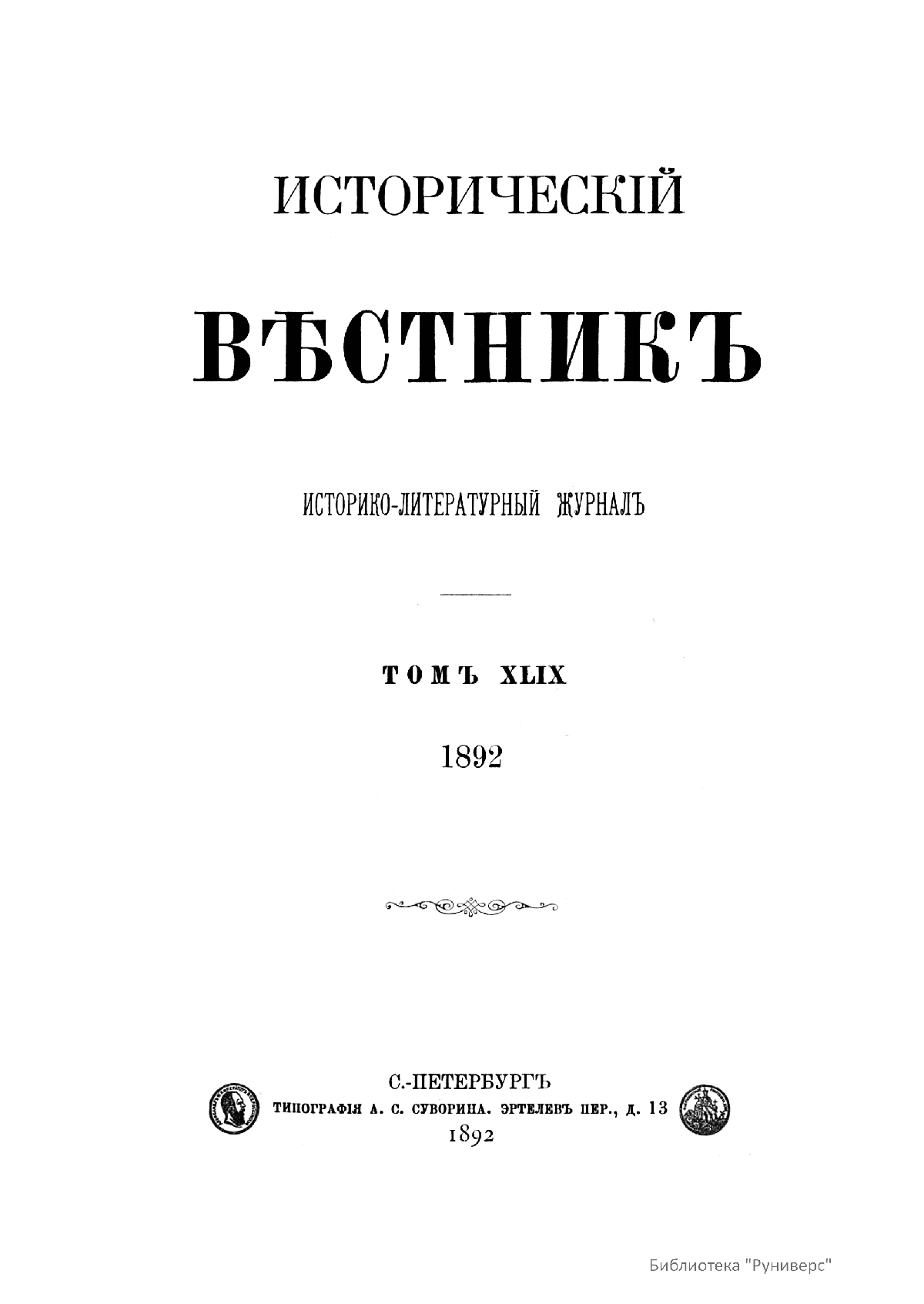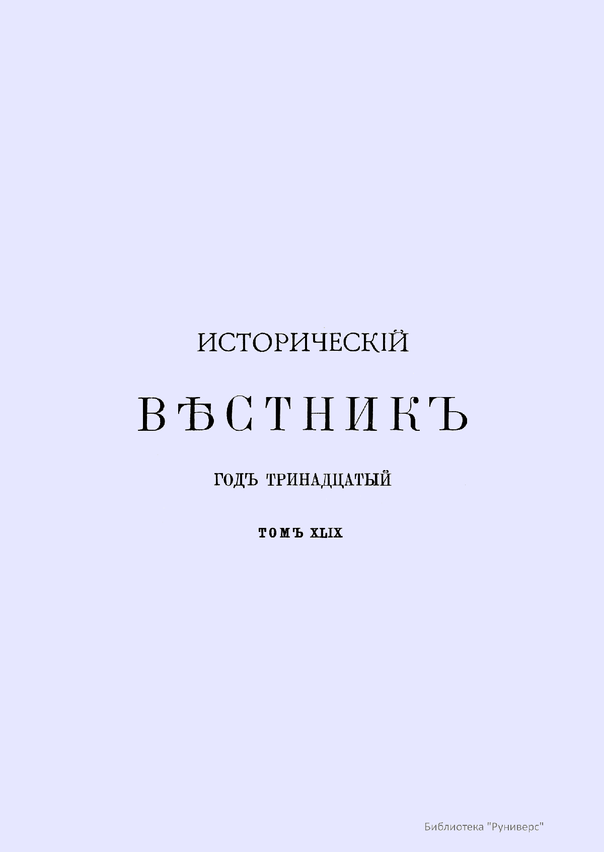 Исторический вестник. Историко-литературный журнал. Том XLIX