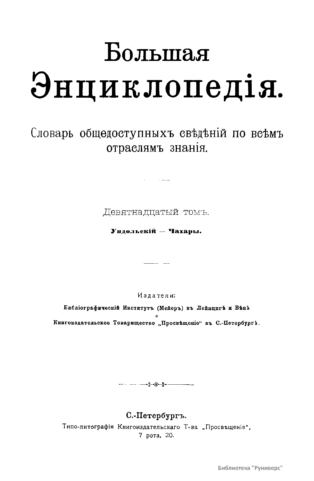 Большая Энциклопедiя. Девятнадцатый томъ. Ундольскiй - Чахары