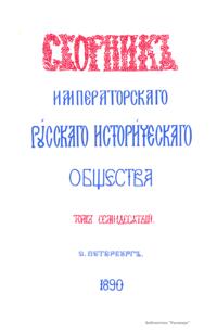 Сборникъ Русскаго историческаго общества. Томъ семидесятый
