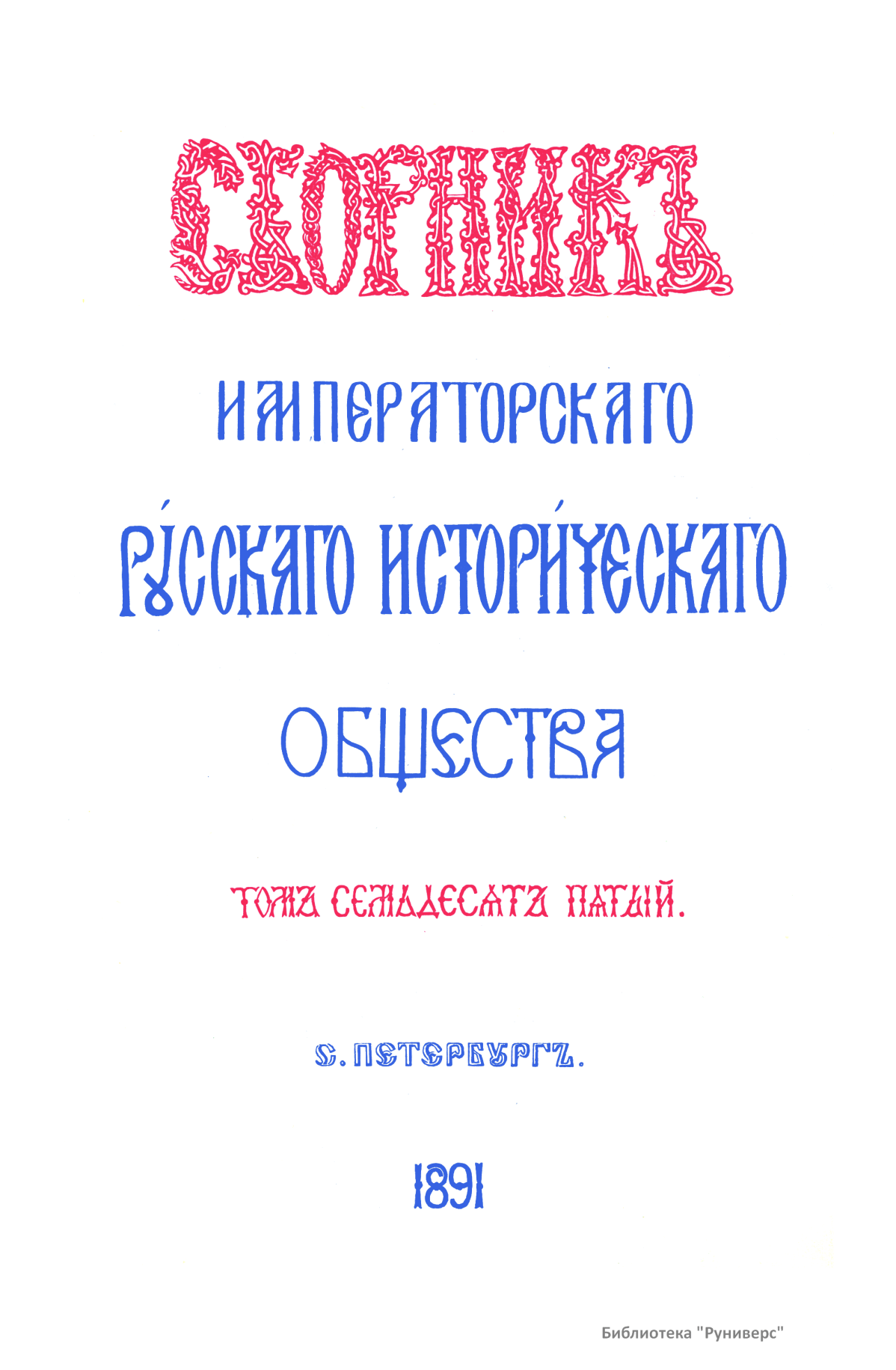 Сборникъ Русскаго историческаго общества. Томъ семьдесятъ пятый