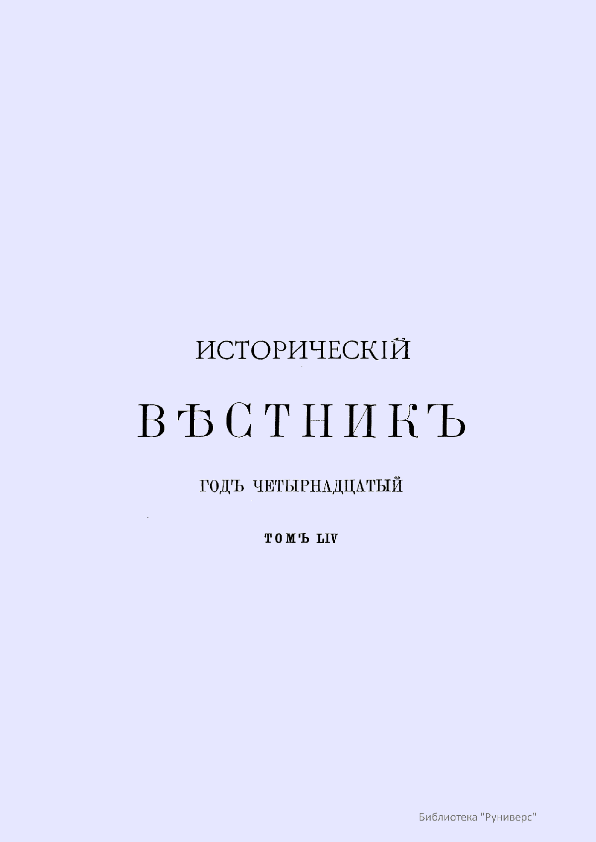 Историческiй вѣстникъ. Историко-литературный журналъ. Томъ LIV
