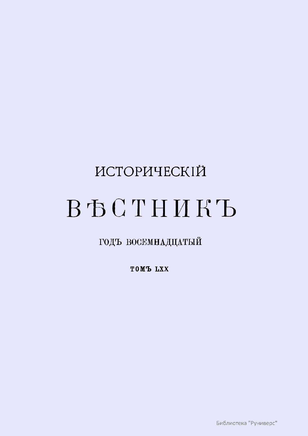 Исторический вестник. Историко-литературный журнал. Том LXX