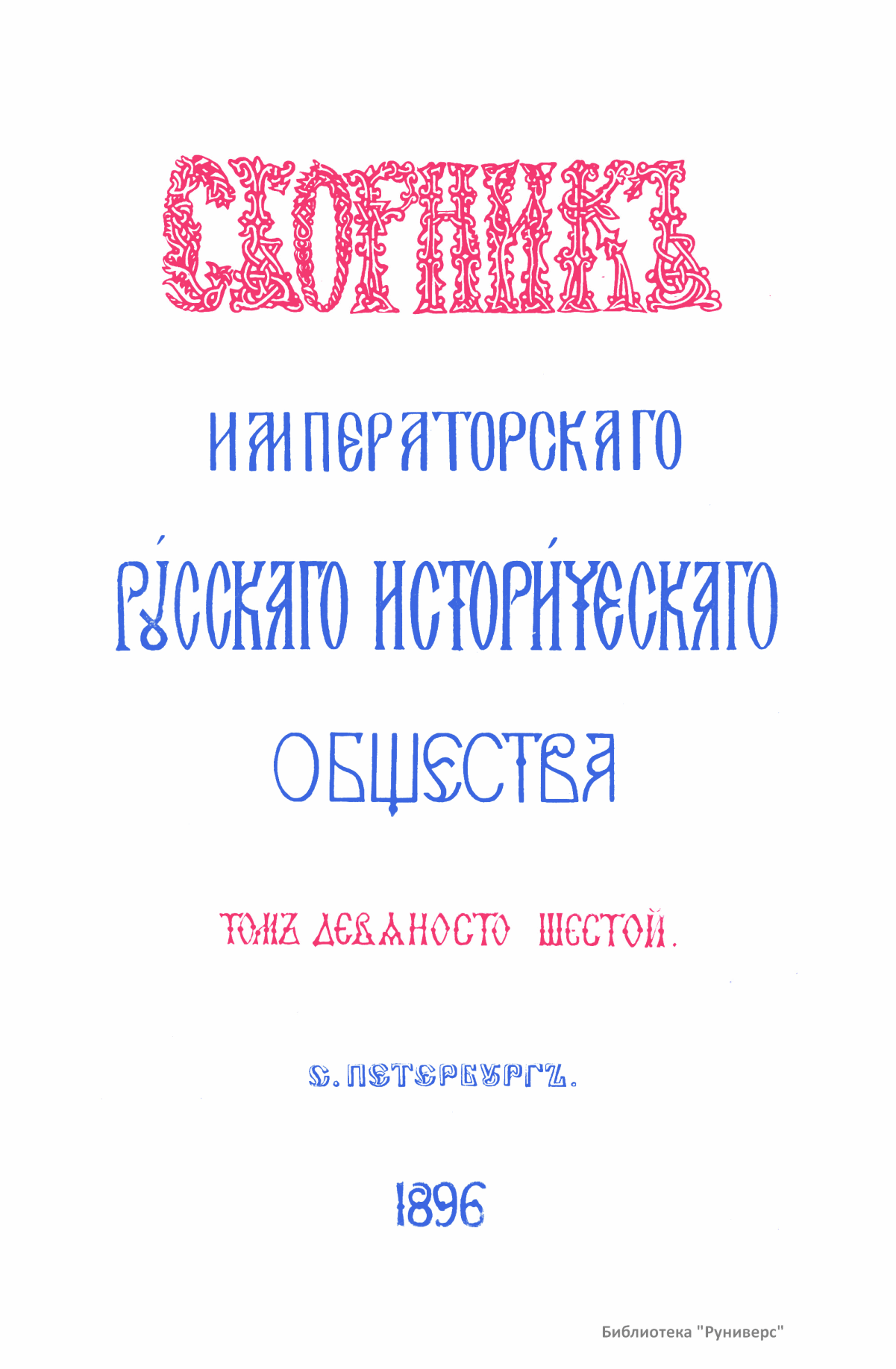 Сборникъ Русскаго историческаго общества. Томъ девяносто шестой