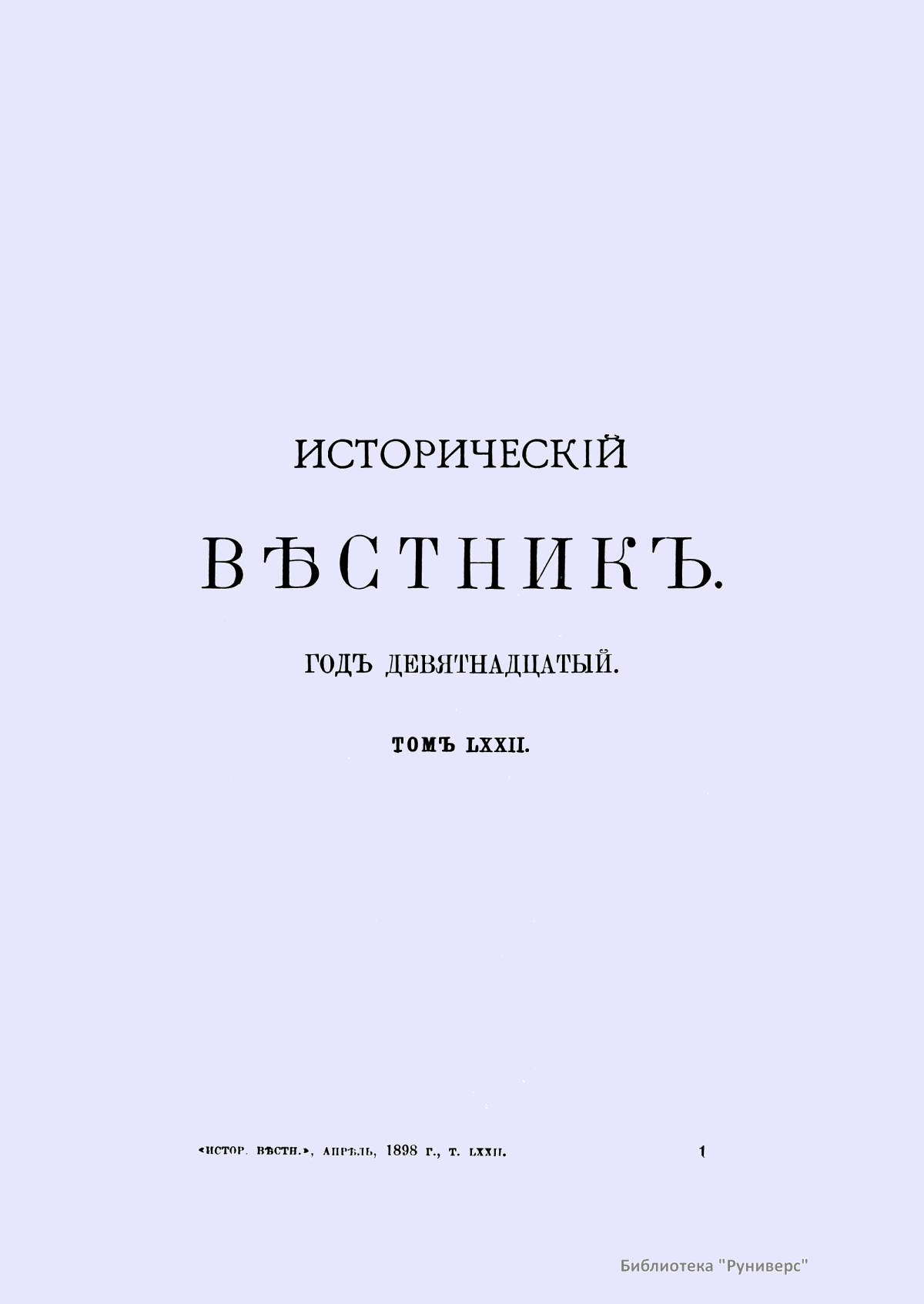 Историческiй вѣстникъ. Историко-литературный журналъ. Томъ LXXII