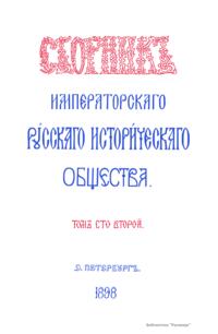 Сборникъ Русскаго историческаго общества. Томъ сто второй