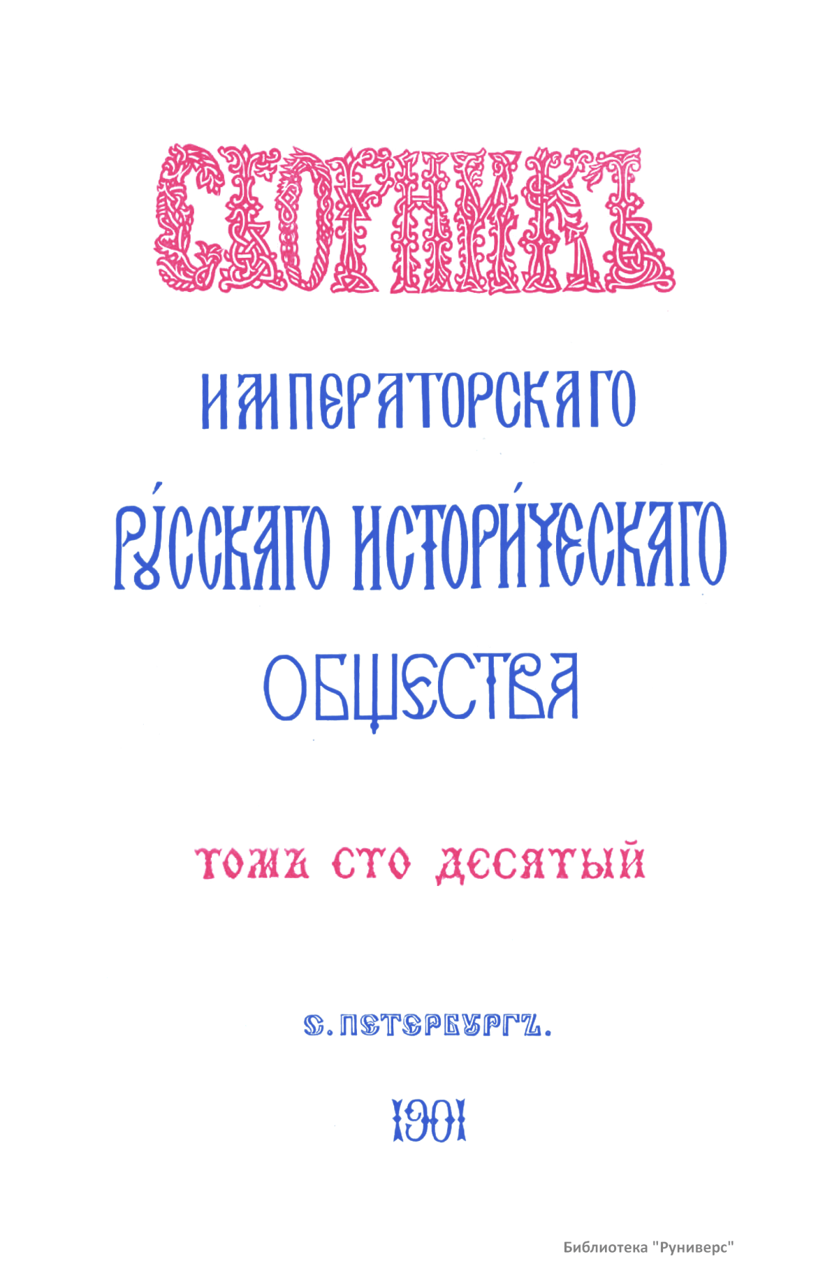 Сборникъ Русскаго историческаго общества. Томъ сто десятый