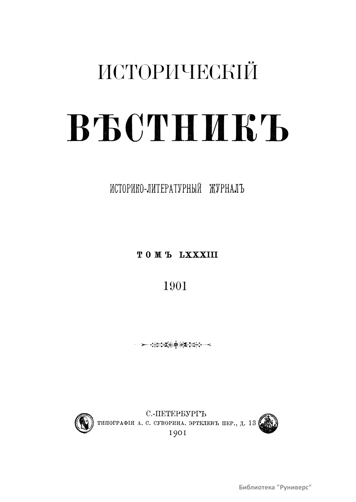 Исторический вестник. Историко-литературный журнал. Том LXXXIII