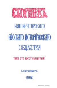 Сборникъ Русскаго историческаго общества. Томъ сто шестнадцатый