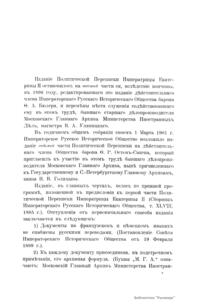 Сборники Русского исторического общества (РИО) – крупнейшая серийная публикация источников по истории России XVIII–XIX веков. За пятьдесят лет существования Общества (1866–1916) было выпущено 148 томов Сборника. Тематика опубликованных в Сборнике материалов обширна и включает в себя документы, относящиеся как к внутренней, так и внешней политике государства. Среди них можно выделить шесть крупных серий: «Материалы по истории Екатерининской комиссии для сочинения проекта нового Уложения 1767 г.», «Бумаги Екатерины II», «Материалы для истории высших государственных учреждений России в XVIII в.», «Материалы для политической и бытовой истории в 1812 г.», «Дипломатическая переписка иностранных послов и посланников при русском дворе», «Памятники дипломатических отношений древней России с державами иностранными», включающие документы XV–XVII веков, перешедшие в РИО от Второго отделения императорской канцелярии. Помимо этих серий в Сборнике публиковались личные бумаги Петра I, Петра II, Екатерины I, Александра I, Николая I, Александра II, а также документы, связанные с деятельностью видных государственных сановников. В Сборнике выходили отчёты о годичных собраниях РИО. Во время подготовки издания Русского биографического словаря в томах 60 и 62 был помещён Азбучный указатель имён русских деятелей для словаря. Основная работа по подготовке издания Сборника лежала на ответственных секретарях РИО. Первым таким секретарём стал один из наиболее деятельных организаторов Общества А. А. Половцев. В разное время в работе Общества принимали участие крупные историки: С. М. Соловьёв, В. О. Ключевский, Н. И. Костомаров, Н. Ф. Дубровин, П. П. Пекарский, В. И. Сергеевич, Я. К. Грот, А. Н. Филиппов, И. Е. Забелин, А. Н. Пыпин, С. Ф. Платонов, В. С. Иконников, Н. Д. Чечулин, А. Н. Попов.