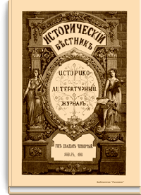 «Исторический вестник» - русский ежемесячный историко-литературный журнал. Издавался в Санкт-Петербурге с 1880-го по 1917 г. Журнал был основан А.С. Сувориным и С.Н. Шубинским с целью «знакомить читателей в живой, общедоступной форме с современным состоянием исторической науки и литературы в России и Европе». Вышло 150 тт. Каждый том состоял из трёх ежемесячных выпусков, имел свою нумерацию страниц, оглавление, список иллюстраций. Журнал приобрёл устойчивую популярность среди читателей, заняв прочное место в «триумвирате» русских исторических журналов наряду с «Русским архивом» и «Русской стариной». опережая их по количеству подписчиков. Отличием «Исторического вестника» было то, что он не помещал на своих страницах необработанных, сырых материалов. С другой стороны, журнал приближался по своему типу к журналам общелитературного образца, сочетая в себе коммерческий успех и доступное изложение материала.