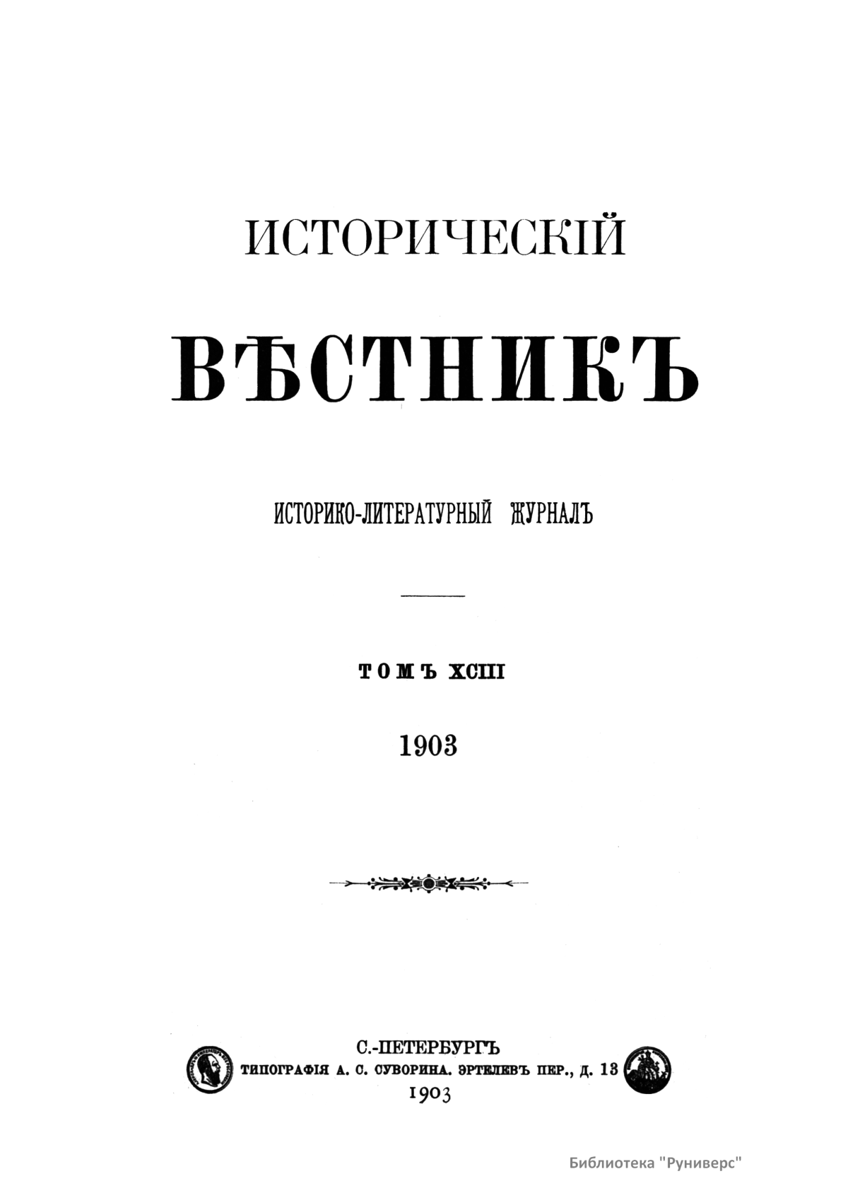 Исторический вестник. Историко-литературный журнал. Том XCIII