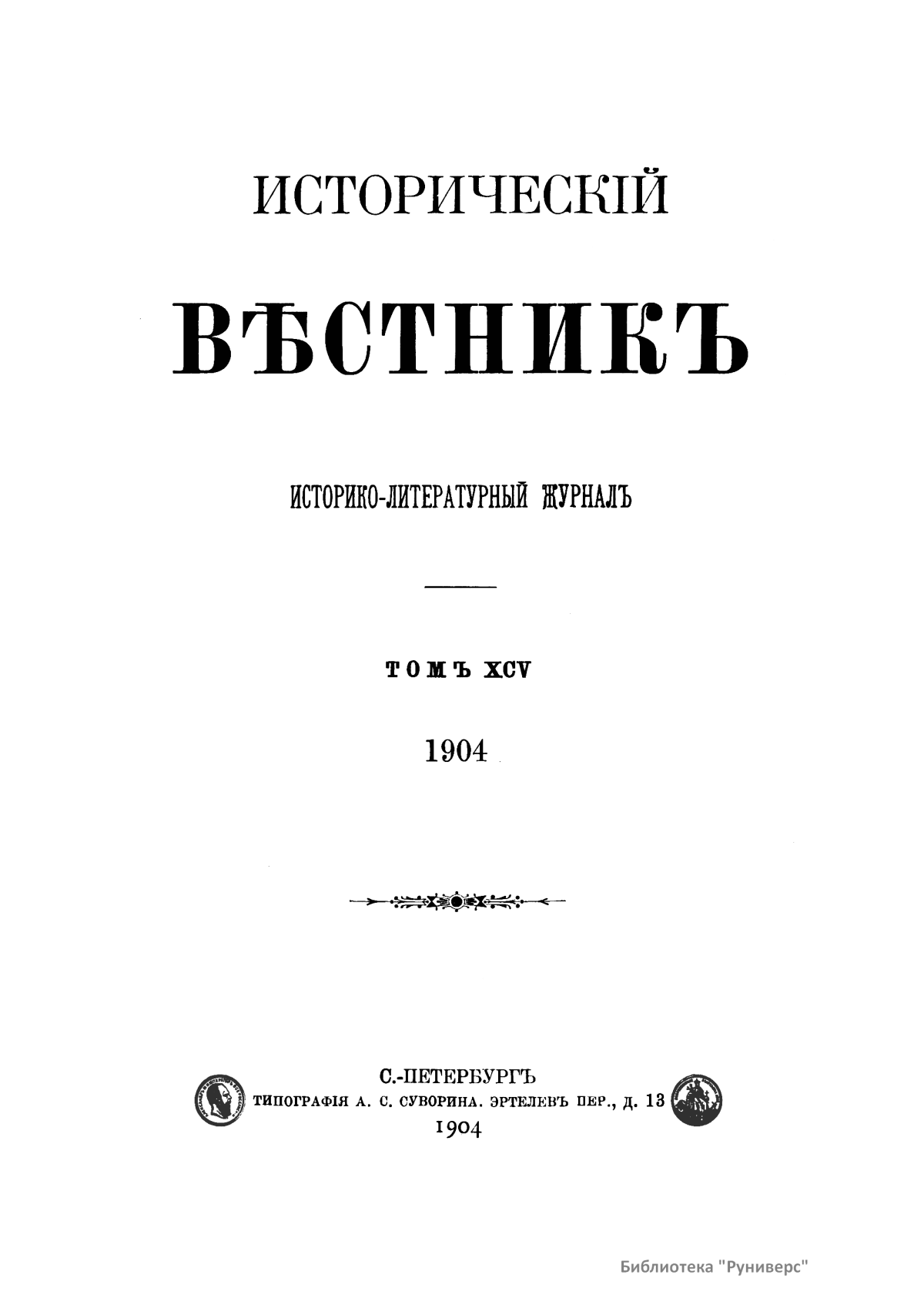 Исторический вестник. Историко-литературный журнал. Том XCV