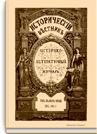 «Исторический вестник» - русский ежемесячный историко-литературный журнал. Издавался в Санкт-Петербурге с 1880-го по 1917 г. Журнал был основан А.С. Сувориным и С.Н. Шубинским с целью «знакомить читателей в живой, общедоступной форме с современным состоянием исторической науки и литературы в России и Европе». Вышло 150 тт. Каждый том состоял из трёх ежемесячных выпусков, имел свою нумерацию страниц, оглавление, список иллюстраций. Журнал приобрёл устойчивую популярность среди читателей, заняв прочное место в «триумвирате» русских исторических журналов наряду с «Русским архивом» и «Русской стариной». опережая их по количеству подписчиков. Отличием «Исторического вестника» было то, что он не помещал на своих страницах необработанных, сырых материалов. С другой стороны, журнал приближался по своему типу к журналам общелитературного образца, сочетая в себе коммерческий успех и доступное изложение материала.
