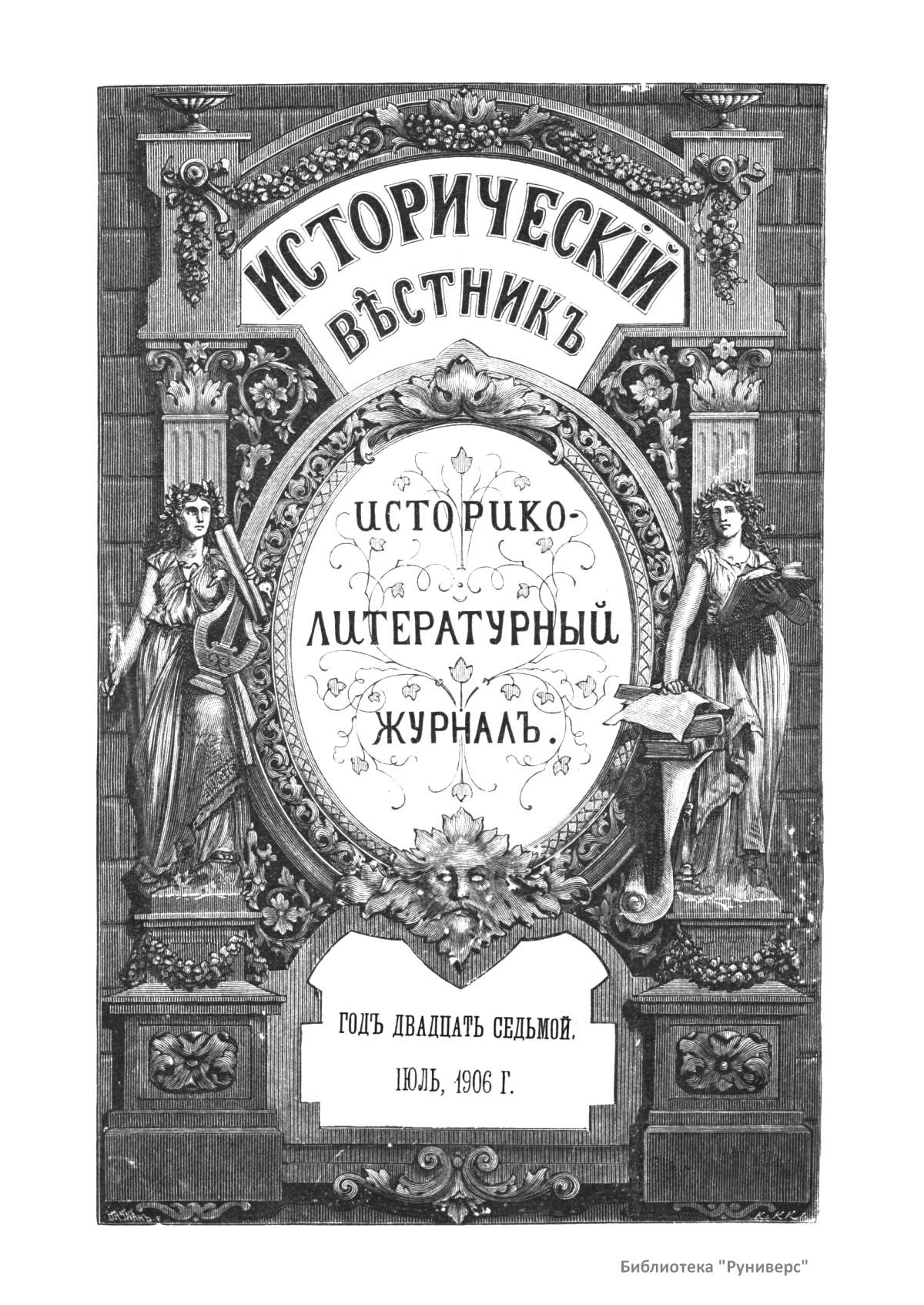 «Исторический вестник» - русский ежемесячный историко-литературный журнал. Издавался в Санкт-Петербурге с 1880-го по 1917 г. Журнал был основан А.С. Сувориным и С.Н. Шубинским с целью «знакомить читателей в живой, общедоступной форме с современным состоянием исторической науки и литературы в России и Европе». Вышло 150 тт. Каждый том состоял из трёх ежемесячных выпусков, имел свою нумерацию страниц, оглавление, список иллюстраций. Журнал приобрёл устойчивую популярность среди читателей, заняв прочное место в «триумвирате» русских исторических журналов наряду с «Русским архивом» и «Русской стариной». опережая их по количеству подписчиков. Отличием «Исторического вестника» было то, что он не помещал на своих страницах необработанных, сырых материалов. С другой стороны, журнал приближался по своему типу к журналам общелитературного образца, сочетая в себе коммерческий успех и доступное изложение материала.