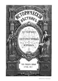 «Исторический вестник» - русский ежемесячный историко-литературный журнал. Издавался в Санкт-Петербурге с 1880-го по 1917 г. Журнал был основан А.С. Сувориным и С.Н. Шубинским с целью «знакомить читателей в живой, общедоступной форме с современным состоянием исторической науки и литературы в России и Европе». Вышло 150 тт. Каждый том состоял из трёх ежемесячных выпусков, имел свою нумерацию страниц, оглавление, список иллюстраций. Журнал приобрёл устойчивую популярность среди читателей, заняв прочное место в «триумвирате» русских исторических журналов наряду с «Русским архивом» и «Русской стариной». опережая их по количеству подписчиков. Отличием «Исторического вестника» было то, что он не помещал на своих страницах необработанных, сырых материалов. С другой стороны, журнал приближался по своему типу к журналам общелитературного образца, сочетая в себе коммерческий успех и доступное изложение материала.