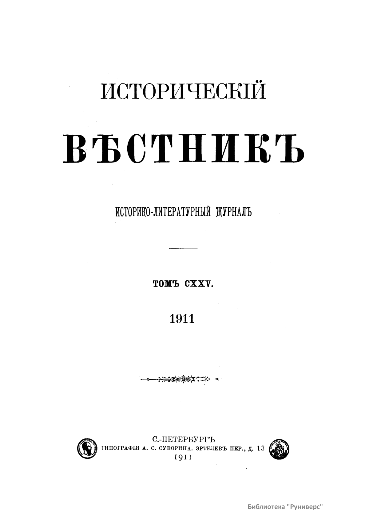 Исторический вестник. Историко-литературный журнал. Том CXXV
