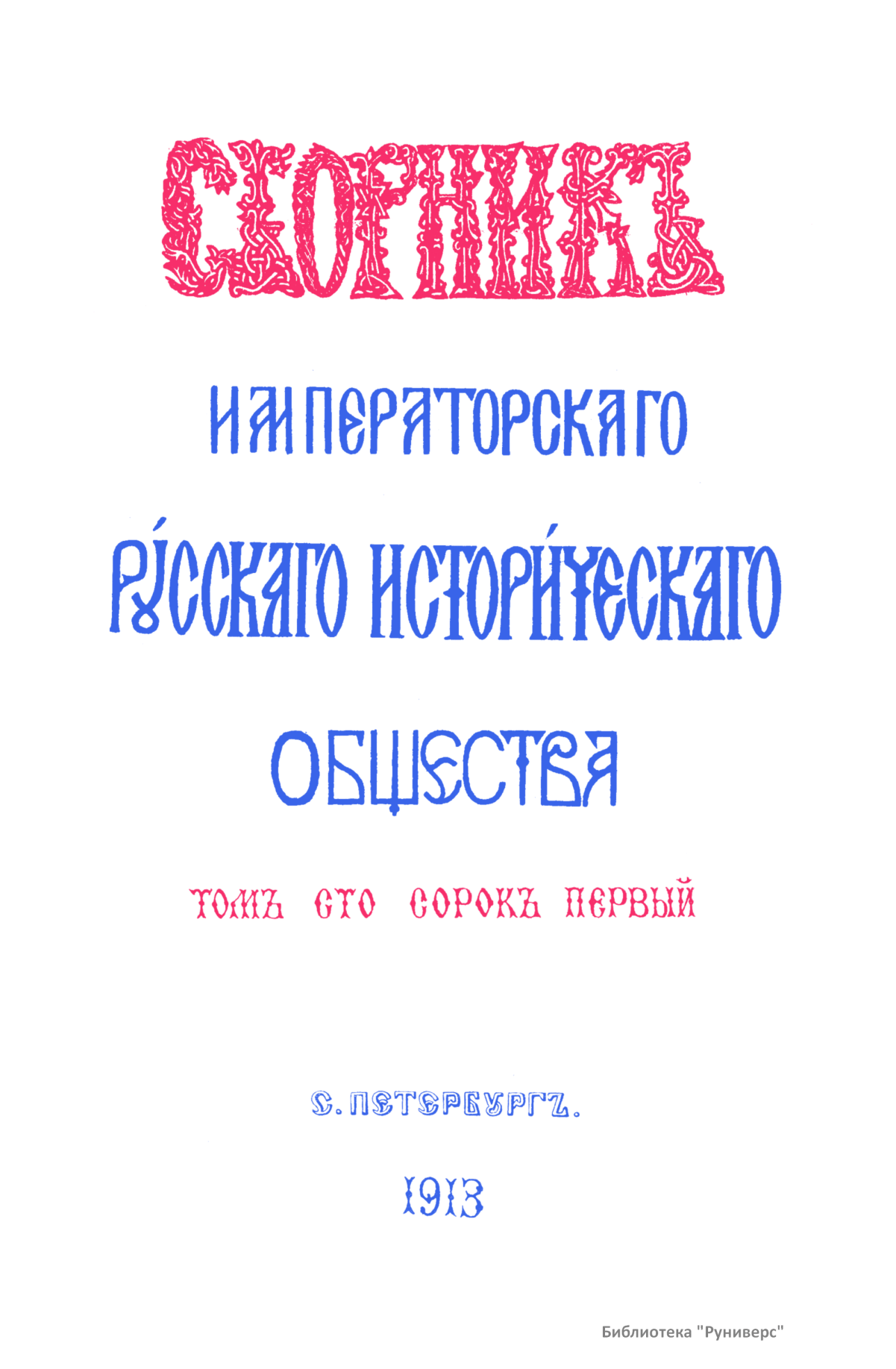 Сборникъ Русскаго историческаго общества. Томъ сто сорокъ первый