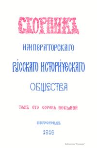 Сборникъ Русскаго историческаго общества. Томъ сто сорокъ восьмой