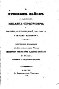 О русскомъ войскѣ въ царствованiе Михаила Ѳеодоровича и послѣ его, до преобразованiй, сдѣланных Петром Великимъ