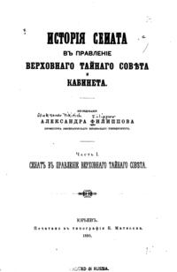 Исторiя Сената въ правленiе Верховнаго Тайнаго Совѣта и кабинета