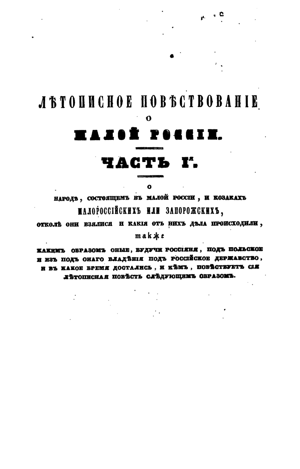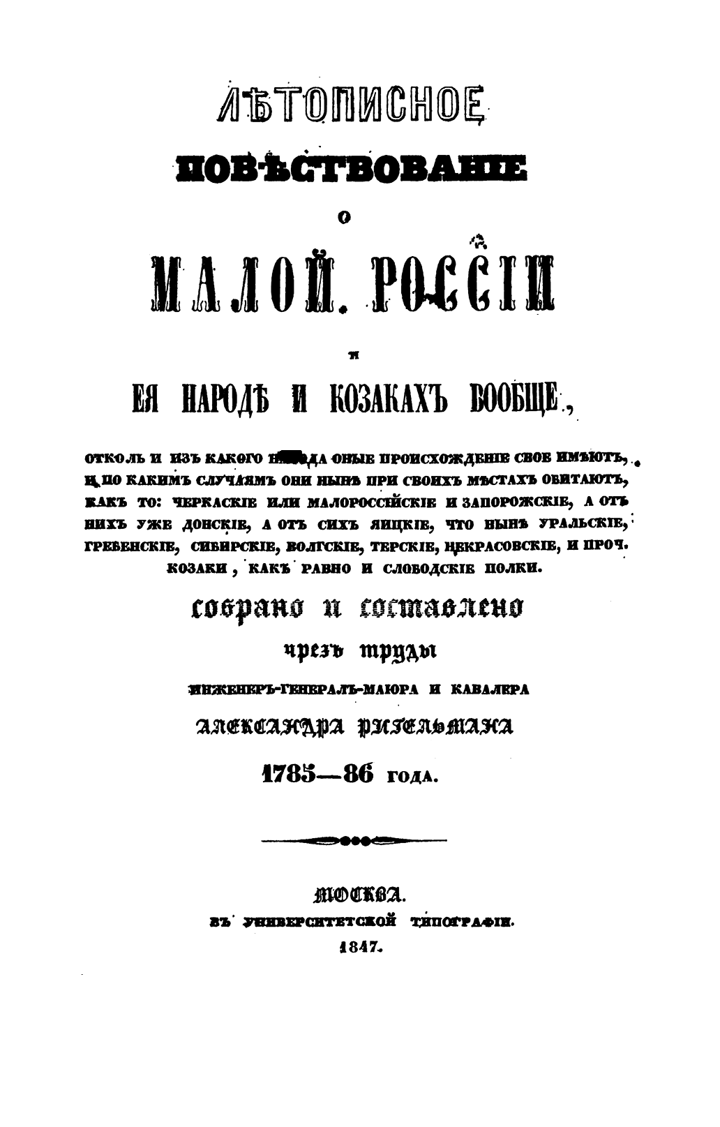 Лѣтописное повѣствованiе о Малой Россiи и ея народѣ и козакахъ вообще