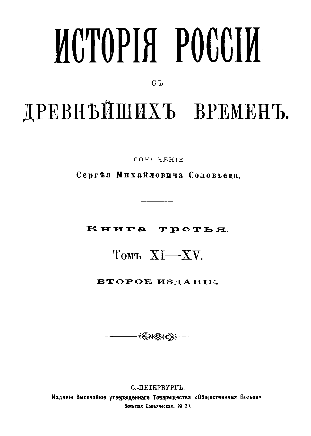 Исторiя Россiи съ древнѣйшихъ временъ. Книга третья. Томъ XI - XV