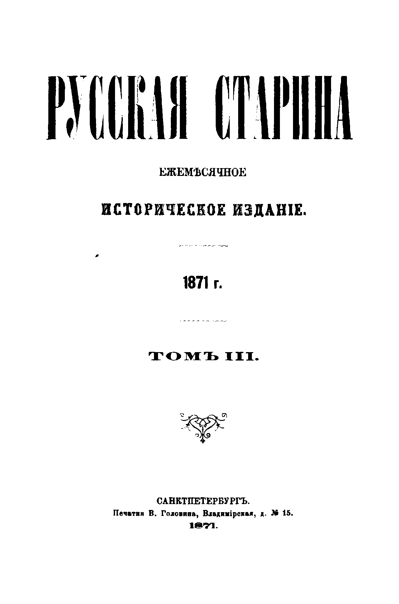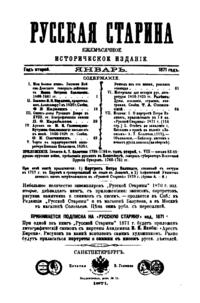 Русская старина. Том III. 1871. Выпуски 1-6