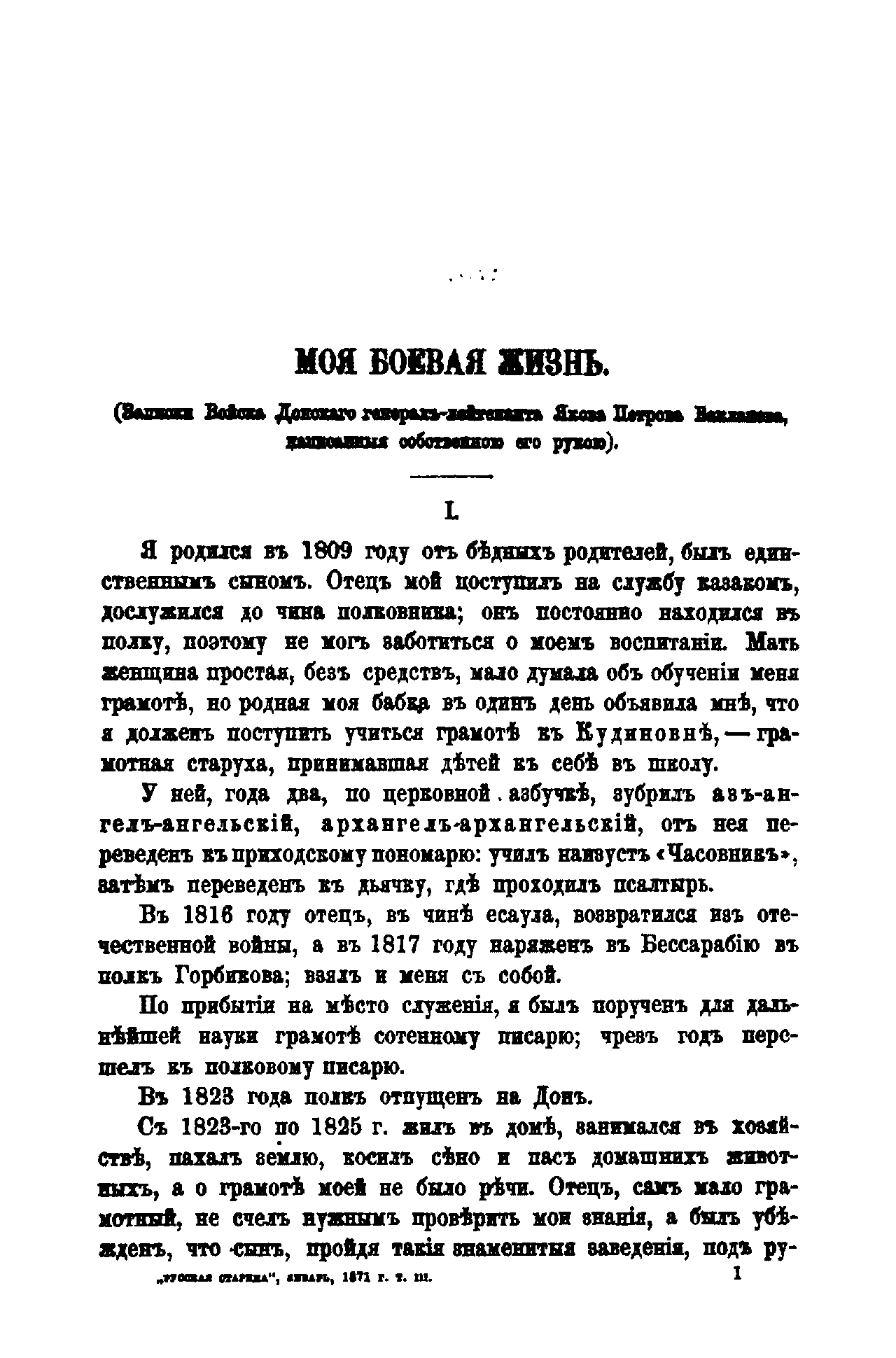 Русская старина. Томъ III. 1871. Выпуски 1-6