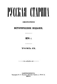 Русская старина. Том IX. 1874. Выпуски 1-4