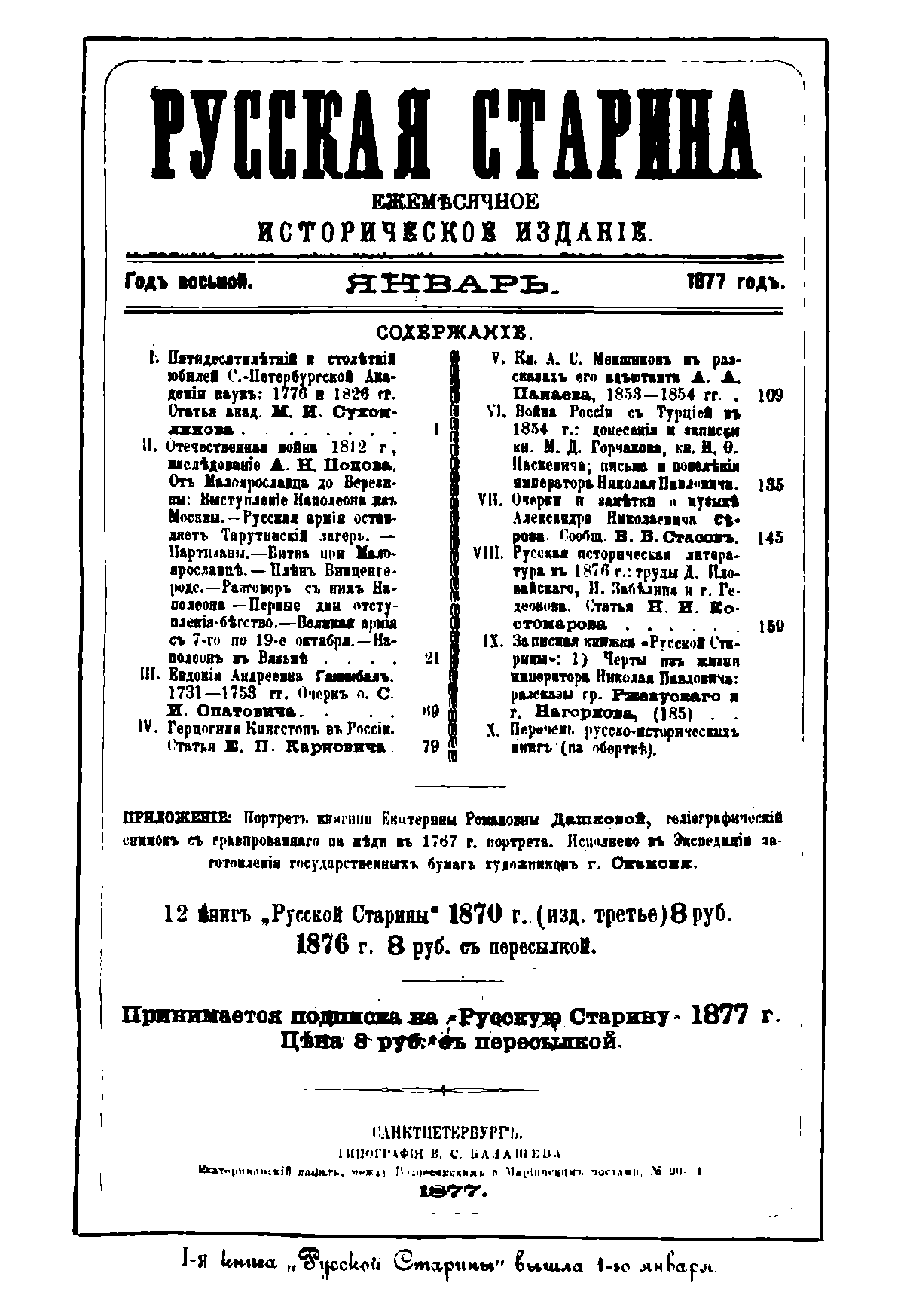 Русская старина. Том XVIII. 1877. Выпуски 1-4