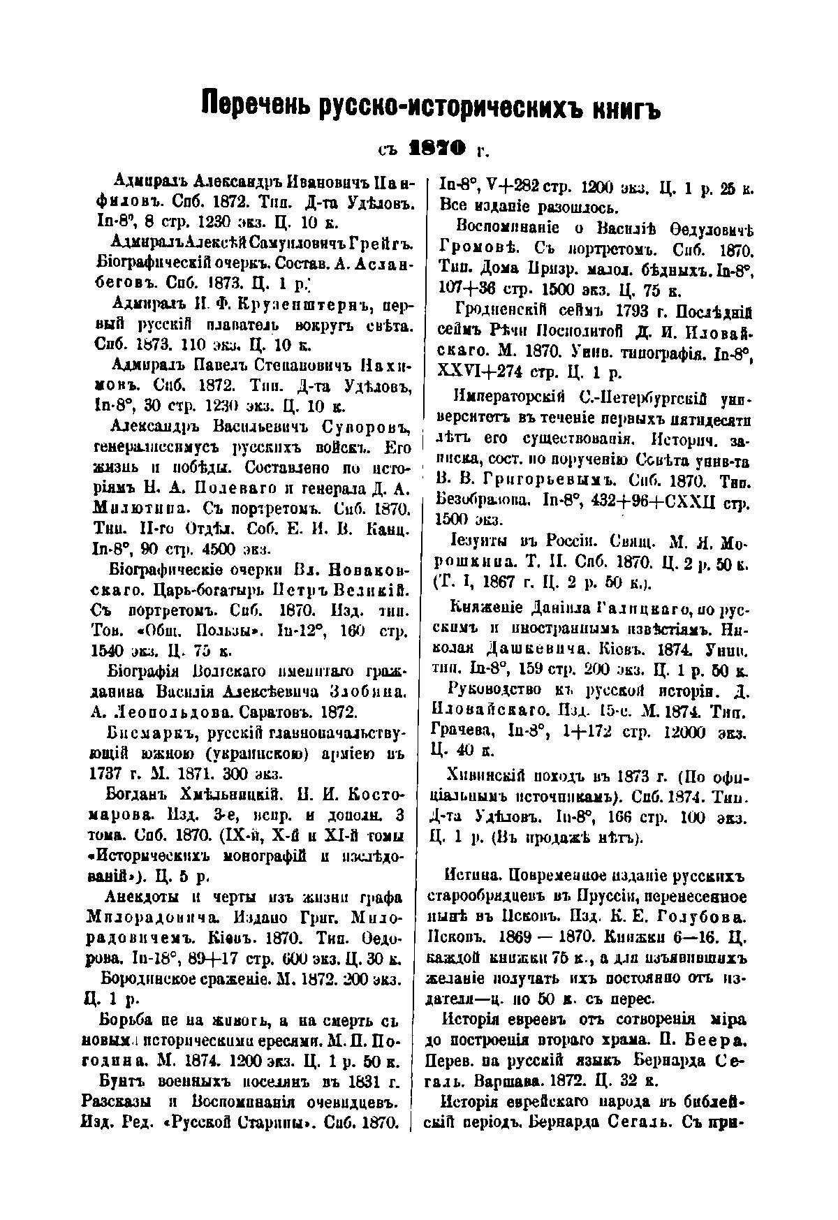 «Русская старина», ежемесячный исторический журнал, выходил в Петербурге в 1870-1918. Основан, издавался и редактировался (1870-1892) М. И. Семевским при участии В. И. Семевского. Последующими редакторами были Н. К. Шильдер (1892-1896), Н. Ф. Дубровин (1896-1904), военные историки С. П. Зыков, П. Н. Воронов.