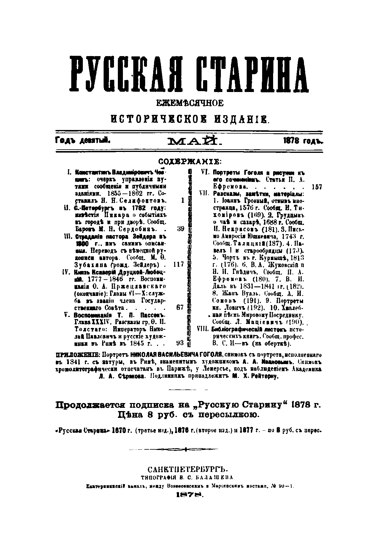 Русская старина. Том XXII. 1878. Выпуски 5-8