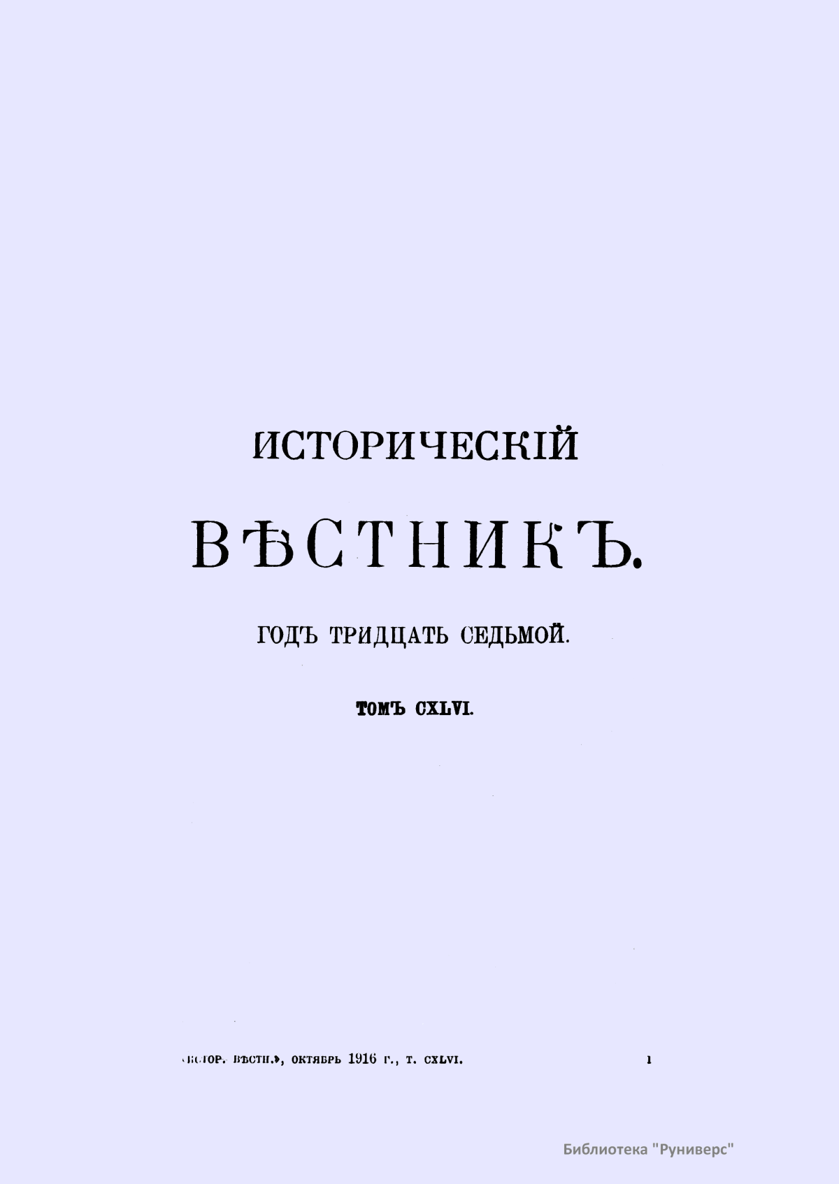 Исторический вестник. Историко-литературный журнал. Том CXLVI