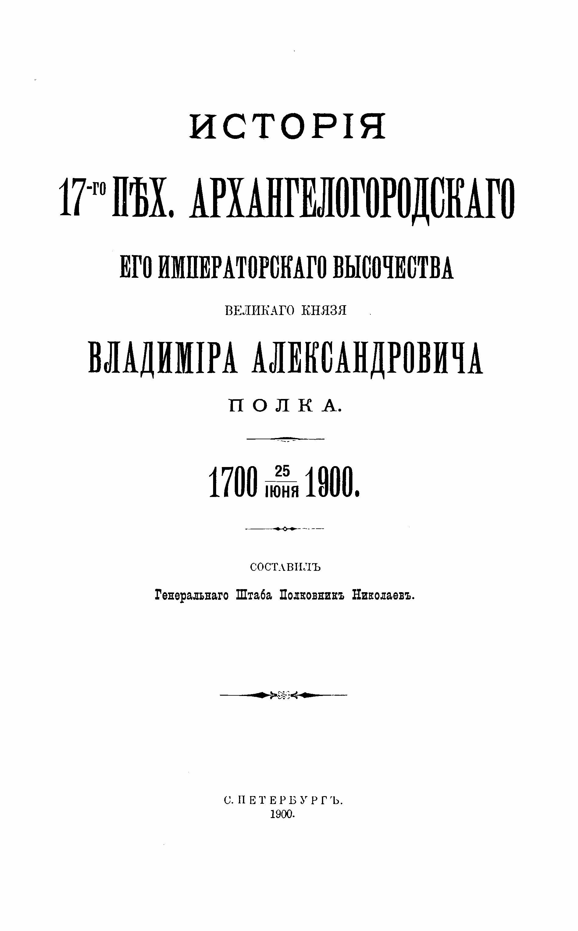 Исторiя 17-го пѣхотнаго Архангелогородскаго Его Императорскаго Высочества Великаго Князя Владимiра Александровича полка