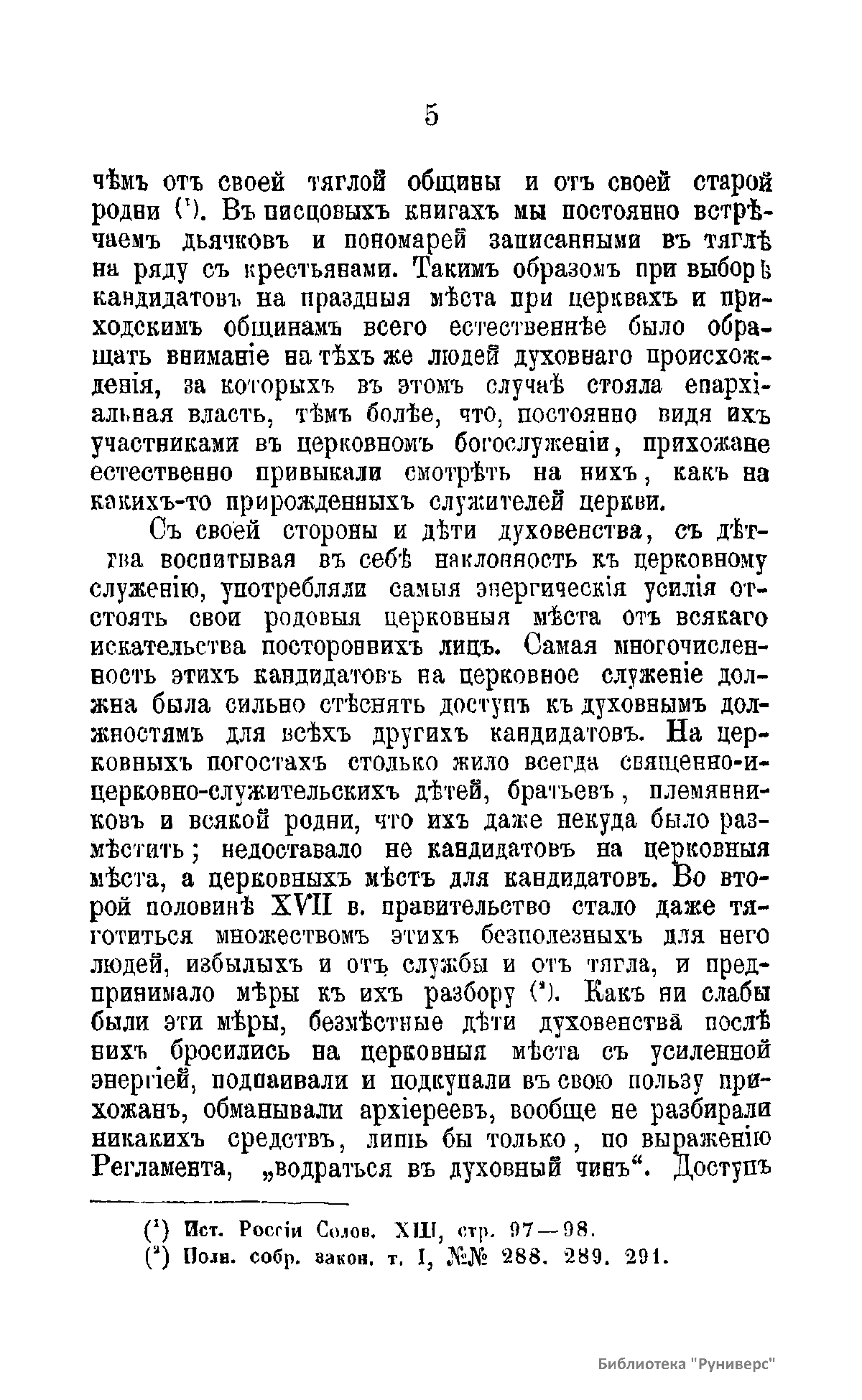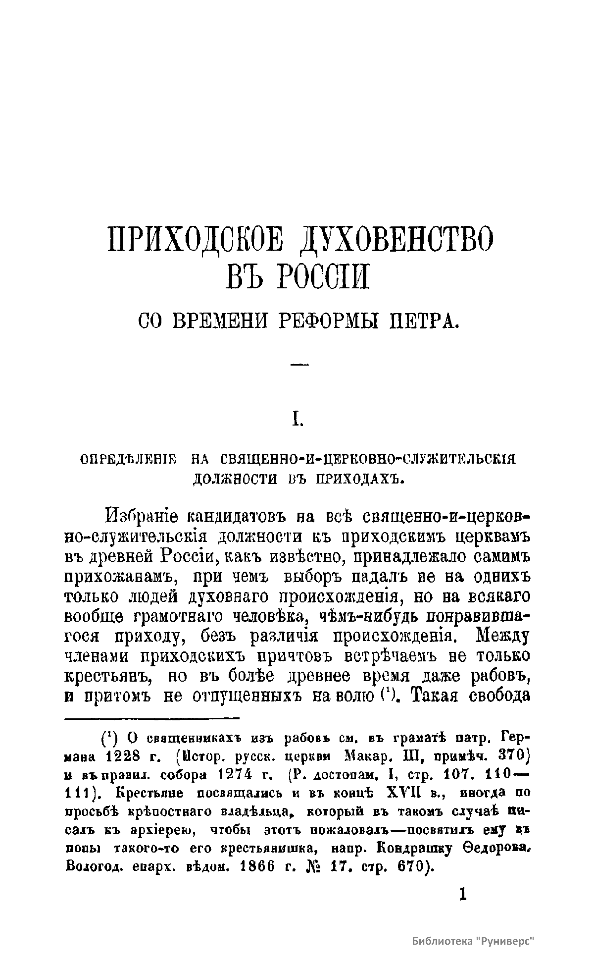 Докторская диссертация Знаменского П.В. исследует правовое положение духовенства в России со времени реформы Петра I. В работе содержатся следующие положения: определение на священно- и церковнослужительские должности в приходах; приходские штаты и выход из духовного звания; гражданские права духовенства; отношение духовенства к духовной власти; способы содержания приходского духовенства.