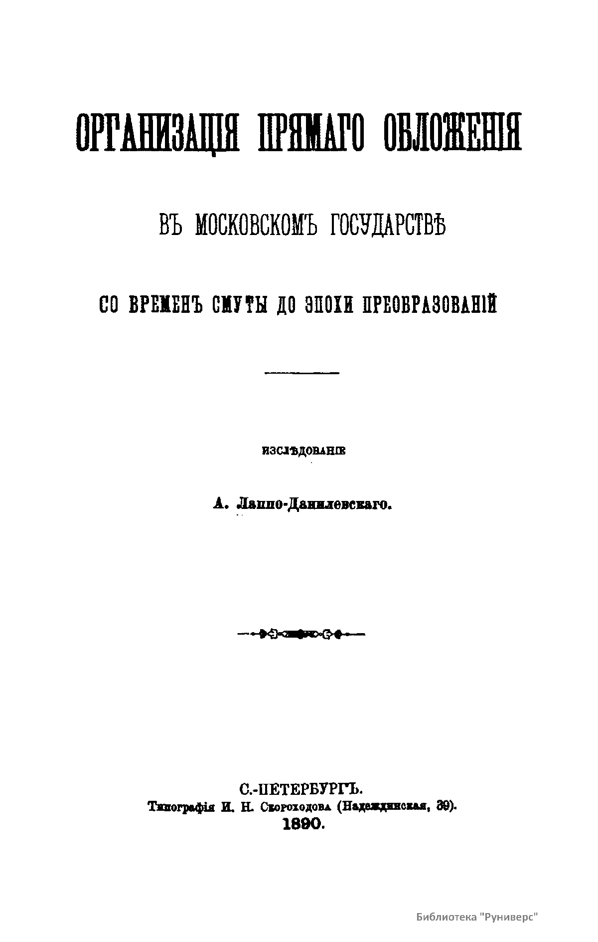 Организацiя прямаго обложенiя въ московскомъ государствѣ со временъ смуты до эпохи преобразованiй