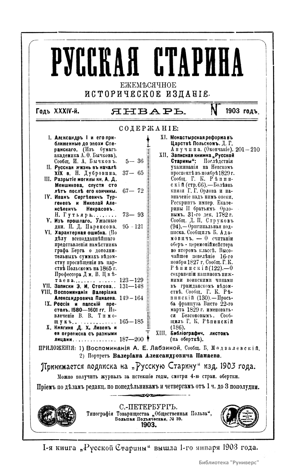 Русская старина. Том CXIII. 1903. Выпуски 1-3