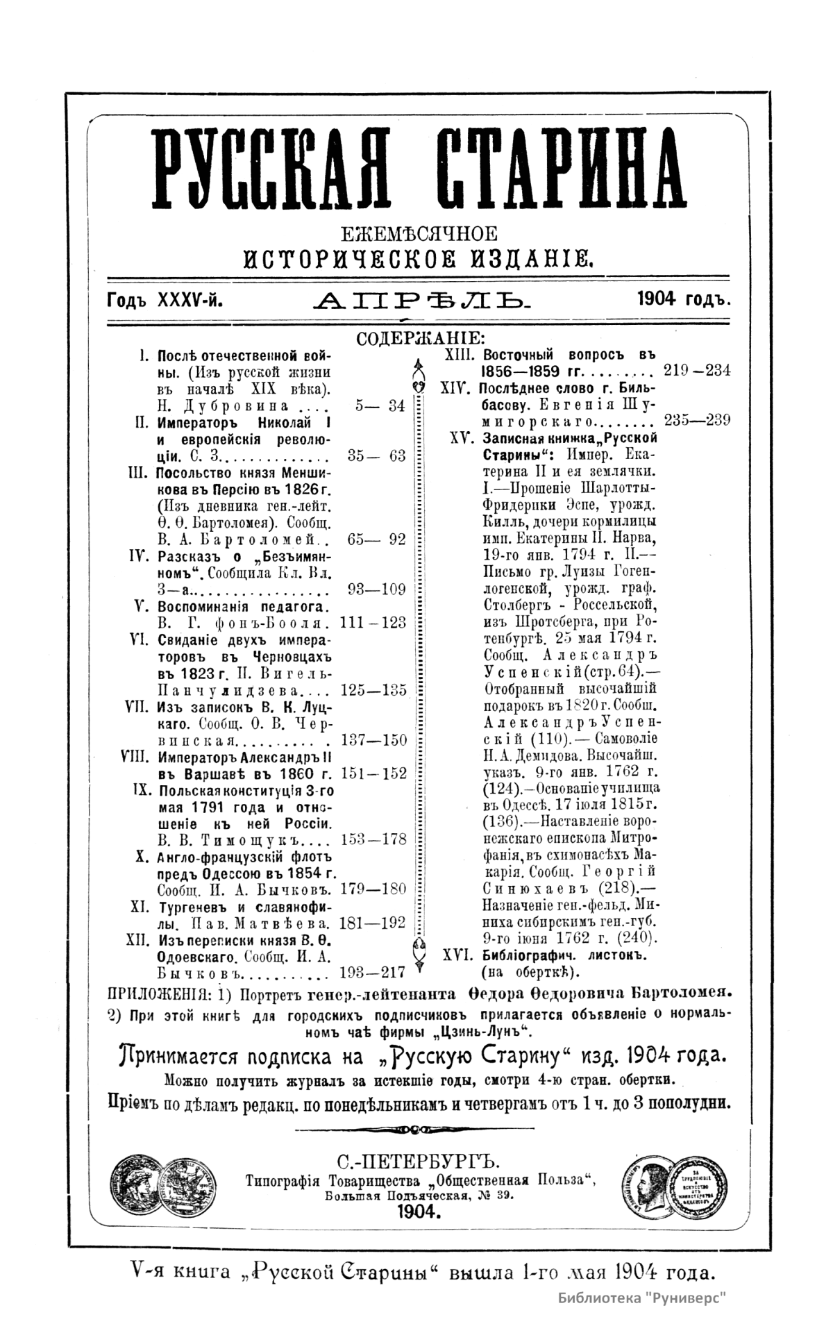 Русская старина. Том CXVIII. 1904. Выпуски 4-6