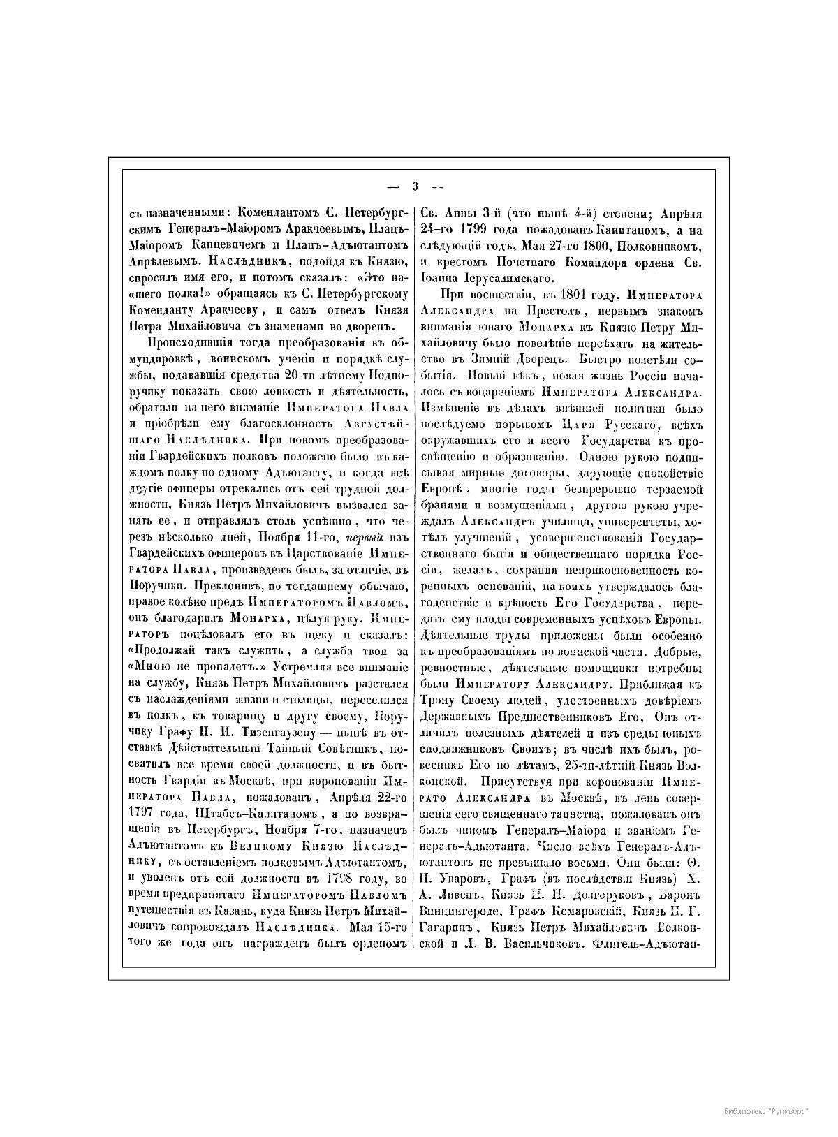 Александр Иванович Михайловский-Данилевский (1790–1848) — участник Отечественной войны 1812 г., генерал-лейтенант, военный историк и академик Санкт-Петербургской академии наук. Автор многих трудов по истории войн Российской империи. В последние годы своей жизни А. И. Михайловский-Данилевский был главным редактором «Военной галереи Зимнего дворца». Война 1812 г. получила название Отечественной и стала ярчайшей страницей российской истории и культуры. В Зимнем дворце столицы император Александр I повелел создать Военную галерею 1812 г. Ни в одном из дворцов Европы не существовало портретной галереи подобной той, что должна была украсить парадную резиденцию русских императоров. В Военной галерее Зимнего дворца должны были разместиться более 300 портретов, для исполнения которых в Петербург весной 1819 г. приехал известный английский живописец Джордж Доу (Даву). В создании портретной галереи принимали участие и русские художники — В. А. Голике, А. В. Поляков. Торжественное открытие галереи состоялось уже в царствование Николая I, в годовщину изгнания французов из России, 25 декабря 1826 г. Шеститомное издание «Император Александр I и его сподвижники в 1812, 1813, 1814 и 1815 гг.: Военная галерея Зимнего дворца, издаваемая с высочайшего соизволения» выходило на протяжении 1845–1849 гг. в петербургской типографии Карла Крайя. Издание объединило портреты и биографии российских генералов, участвовавших в Отечественной войне и заграничных походах. Главным редактором, а также составителем многих биографий стал А. И. Михайловский-Данилевский. Портреты с живописных оригиналов были гравированы на стали парижскими художниками Гюо и Долле. На страницах издания почетное место отведено императору Александру I, представлены биографии и портреты М. И. Кутузова, М. Б. Барклая-де-Толли, вел. кн. Константина Павловича, А. А. Аракчеева, П. П. Коновницына, Д. П. Немировского, Д. С. Дохтурова, П. И. Багратиона, Н. Н. Раевского, А. П. Ермолова, М. И. Платова и многих других героев. Труд А. И. Михайловского-Данилевского содержит обширный документальный и мемуарный материал, представляет подробное описание и анализ военных действий России и Франции на протяжении Отечественной войны 1812 г.