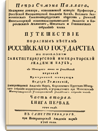 Научные труды П.С. Палласа выходили сначала на родном ему, немецком языке, а потом переводились на русский. Перевод с немецкого труда «Путешествие по разным местам Российского государства» в трех частях (пяти книгах) был выполнен Ф. Туманским и учеником Палласа, Василием Зуевым, состоявшим в его экспедиционном отряде. Впервые на русском языке «Путешествие…» было издано в 1773–1788 гг. в серии «Собрания, старающегося о переводе иностранных книг», учрежденной Екатериной II.