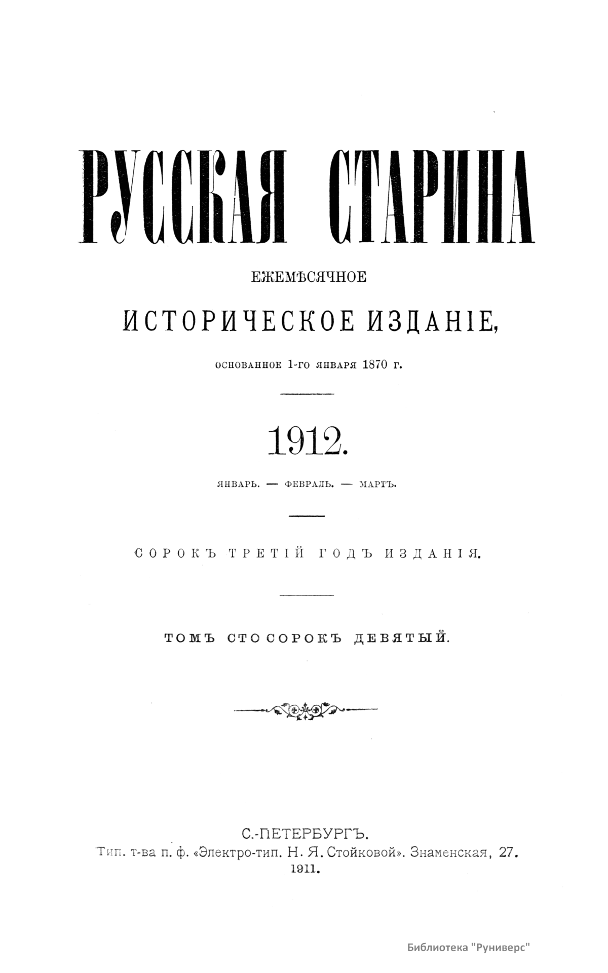 Русская старина. Томъ CXLIX. 1912. Выпуски 1-3