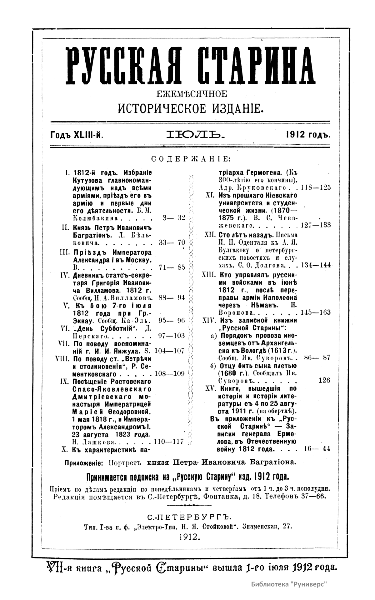 Русская старина. Том CLI. 1912. Выпуски 7-9